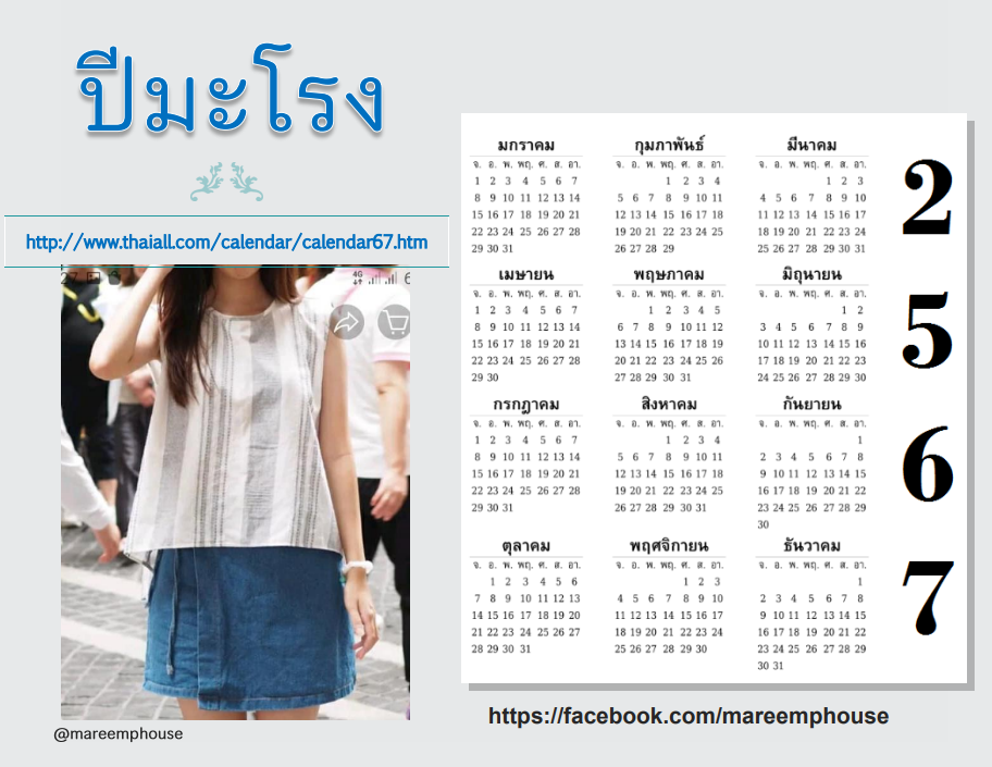 | จันทร์ | 1 มกราคม 2567 1 ม.ค. | วันขึ้นปีใหม่ (New Year's Days) |
