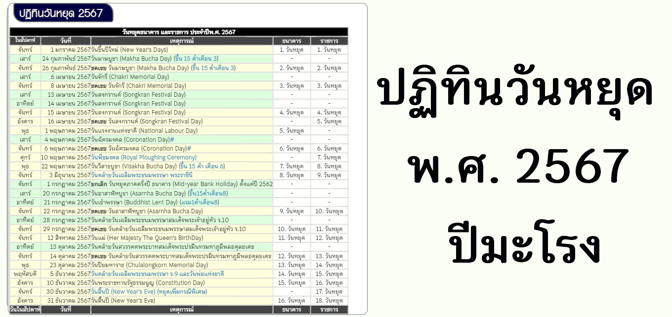 | วันหยุดธนาคาร และราชการ ประจำปีพ.ศ. 2567 |