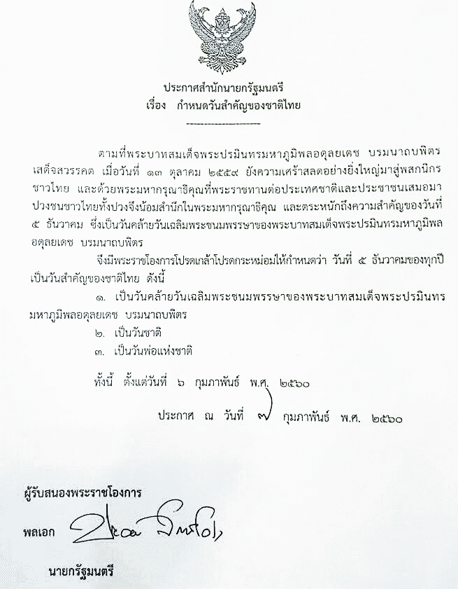 | พฤหัสบดี | 5 ธันวาคม 25675 ธ.ค. | วันคล้ายวันเฉลิมพระชนมพรรษา ร.9 และวันพ่อแห่งชาติ | 14. วันหยุด | 15. วันหยุด |