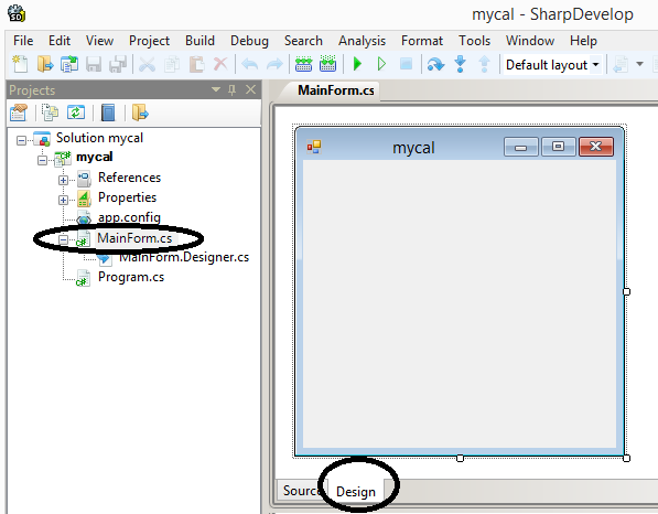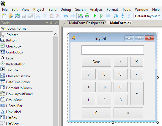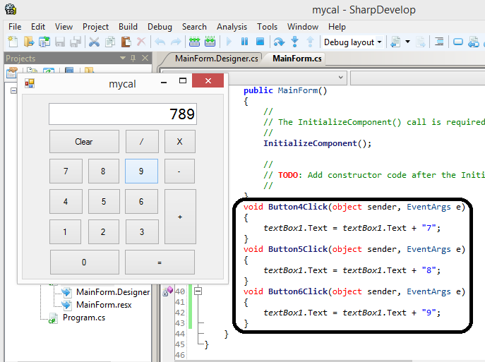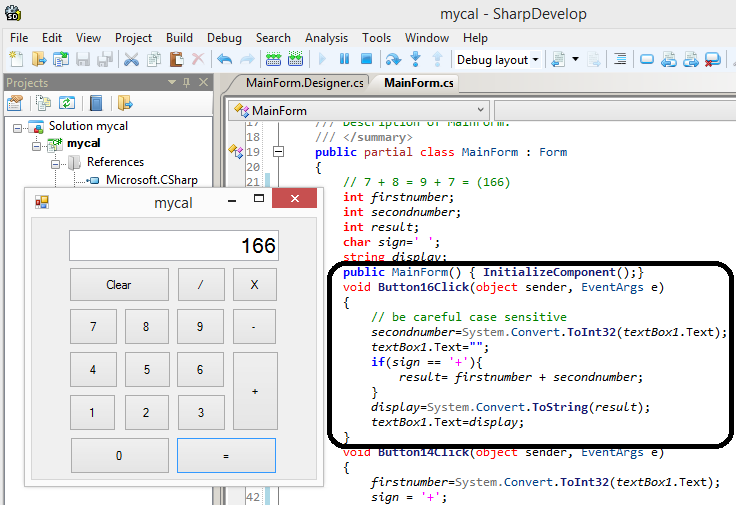 - เมื่อใช้ Open solution เปิด mycal.sln ก็จะแก้ไขและสั่ง run ได้เหมือนครั้งที่เริ่มต้นเขียน