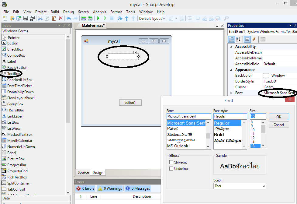 - Properties ของ TextBox สามารถเปลี่ยนขนาดตัวอักษรได้