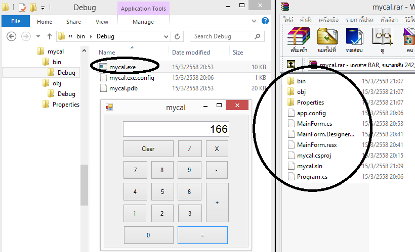 - ห้อง mycal/bin/Debug มีแฟ้ม mycal.exe ที่นำไปใช้งานได้เลย