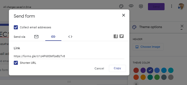| เลือก link แล้วกด Shorten url แล้ว copy จะได้ https://forms.gle/8ueg9MnHSPzietHf9 |