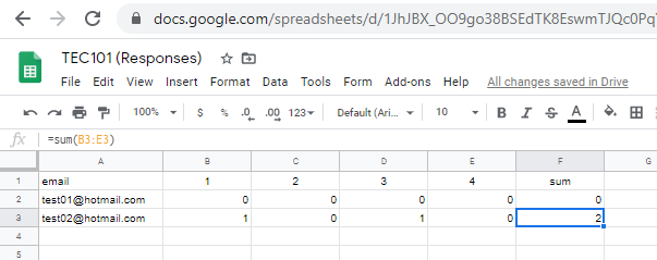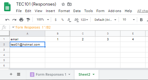 | อีเมลที่กรอกให้ข้อมูลมา จะพบใน responses และ Google sheet |