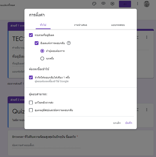 | Google form ต้อง sign in ด้วย gmail.com หรือ G suite ในกรณีเปิดให้บัญชีนอก G Suite |