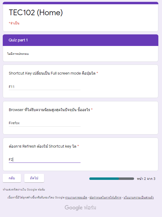 | 5. เมื่อทำครบแล้ว กด "ส่ง" หรือ "Submit" |