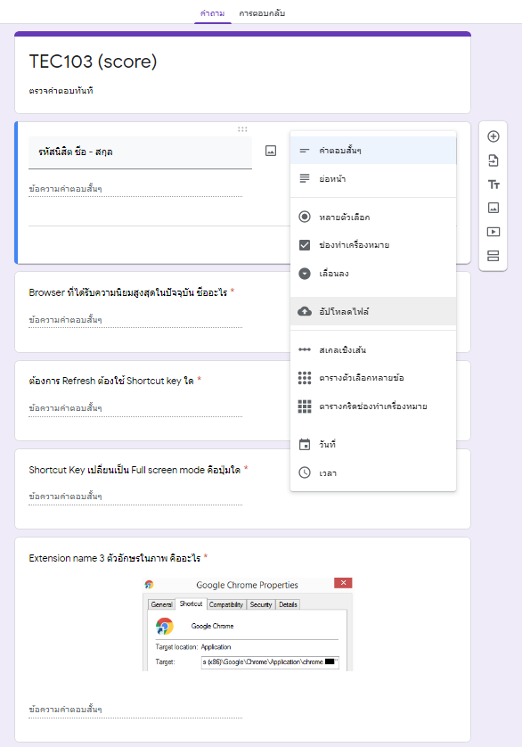 | Form description = "ตอบคำถามวิชาคอมพิวเตอร์เบื้องต้น" |