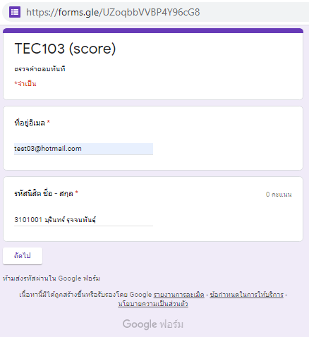 | Untitled Question = "กรอกรหัส ชื่อ-สกุลภาษาไทยให้ชัดเจน" |