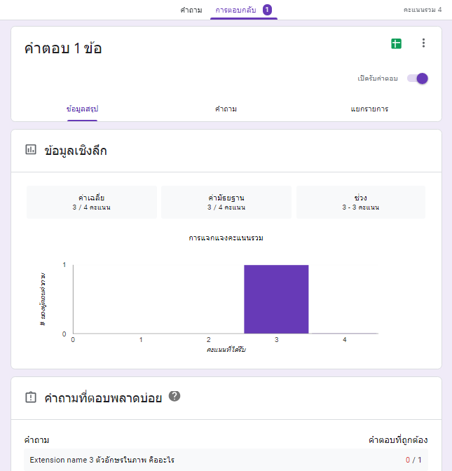| 2. คลิ๊ก Responses เข้า Tab : Summary อัตโนมัติ |