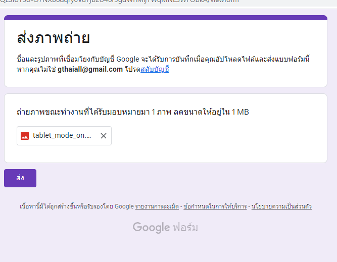 | ด้านบนสุดจะพบ "ชื่อและรูปภาพที่เชื่อมโยงกับบัญชี Google จะได้รับการบันทึกเมื่อคุณอัปโหลดไฟล์และส่งแบบฟอร์มนี้ หากคุณไม่ใช่ xxx@gmail.com" คลิ๊ก Switch account |