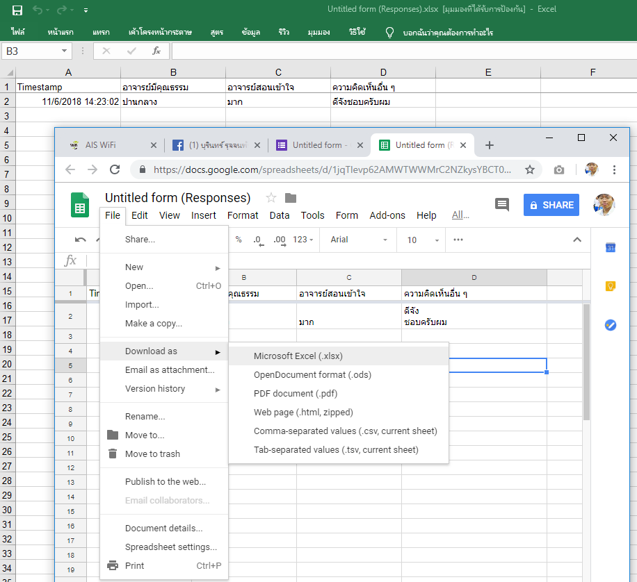 | 6. ขั้นตอนการ Download ผลการตอบคำถามออกจาก Google Form |