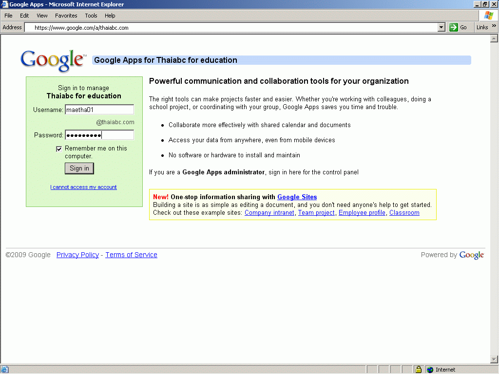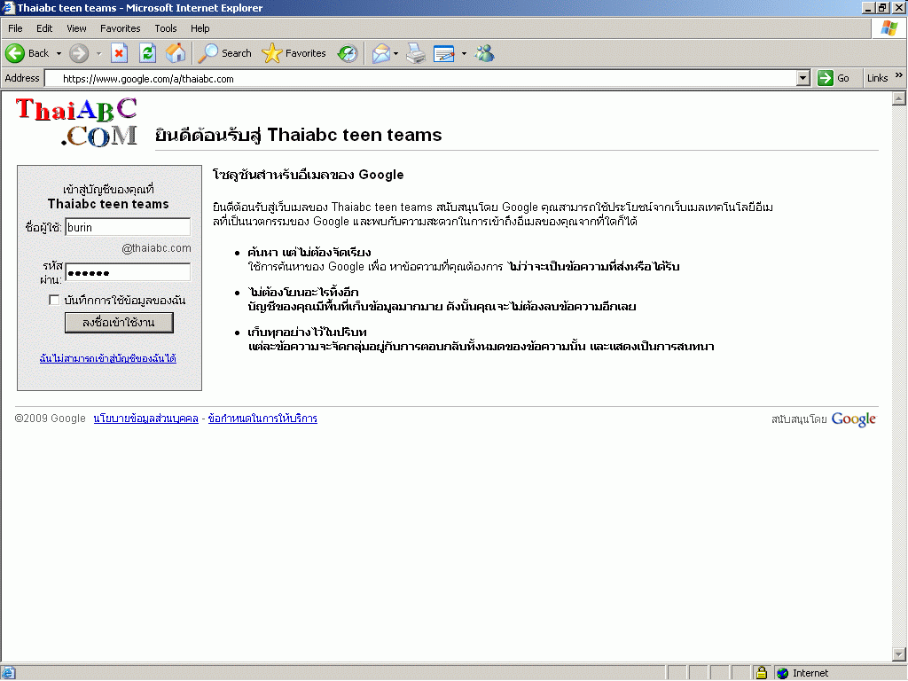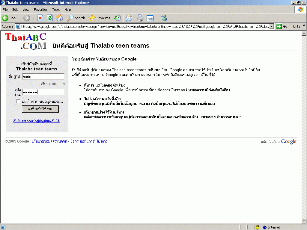 + Sign in เข้าใช้บริการ http://www.google.com/a/thaiabc.com