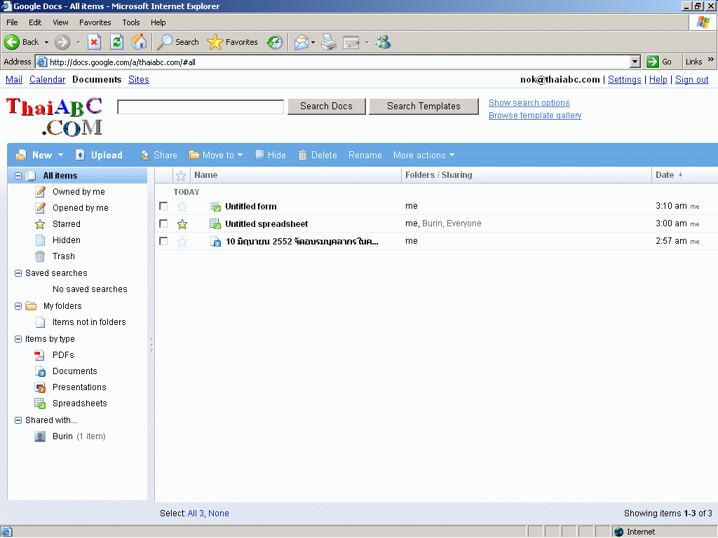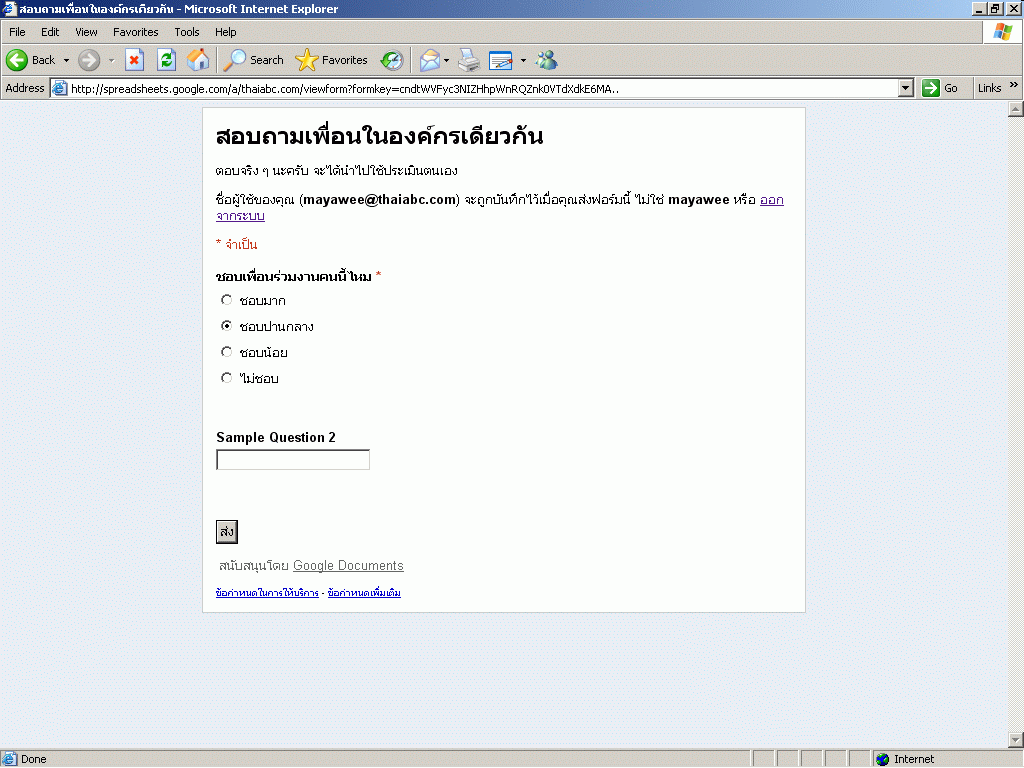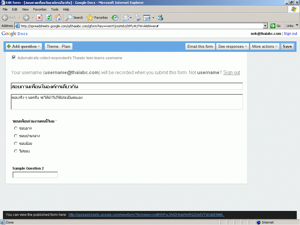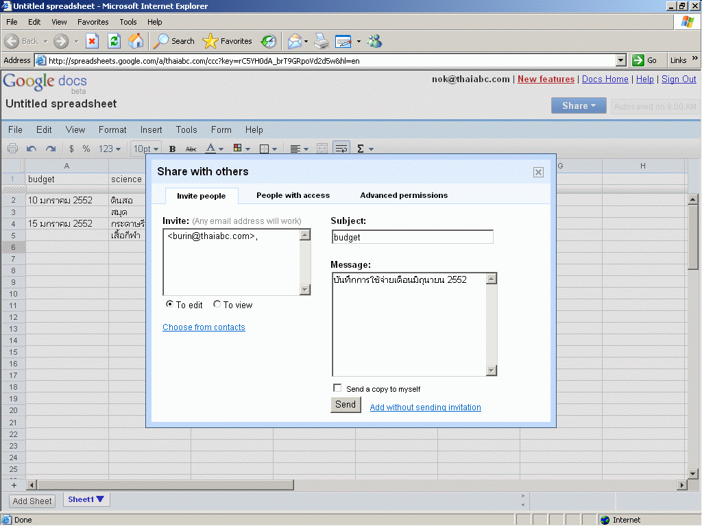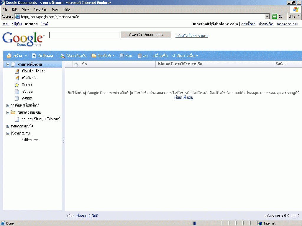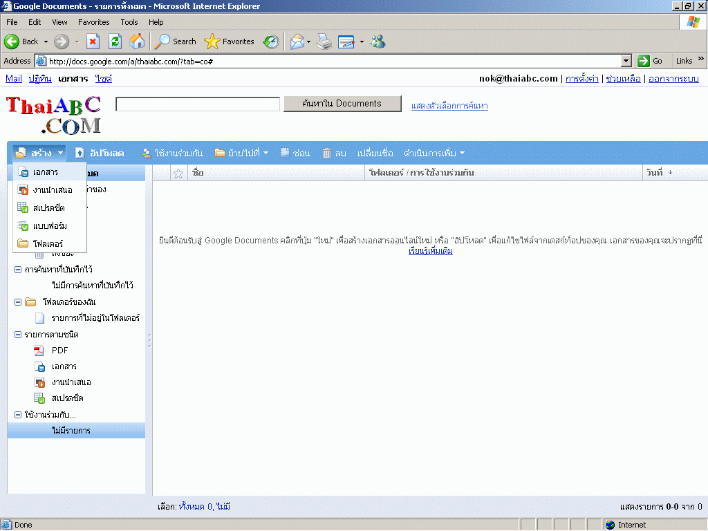 + เมื่อเลือก http://docs.google.com/a/thaiabc.com