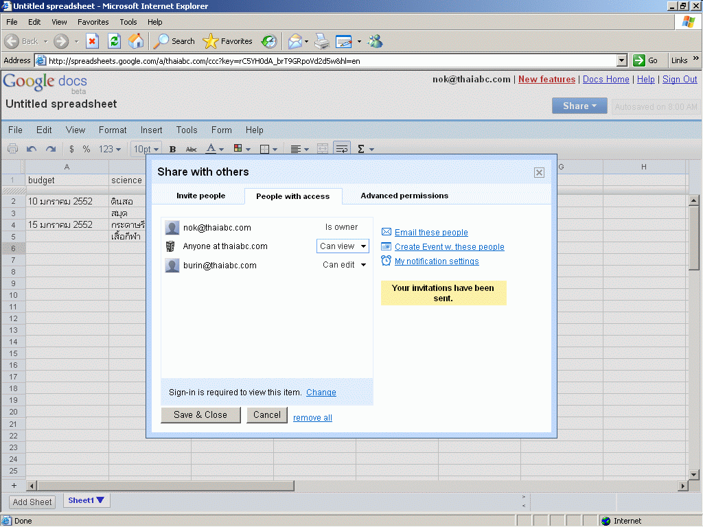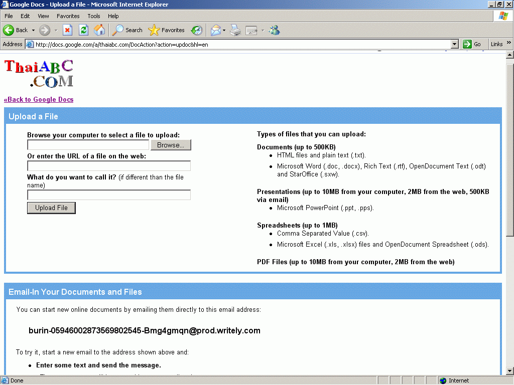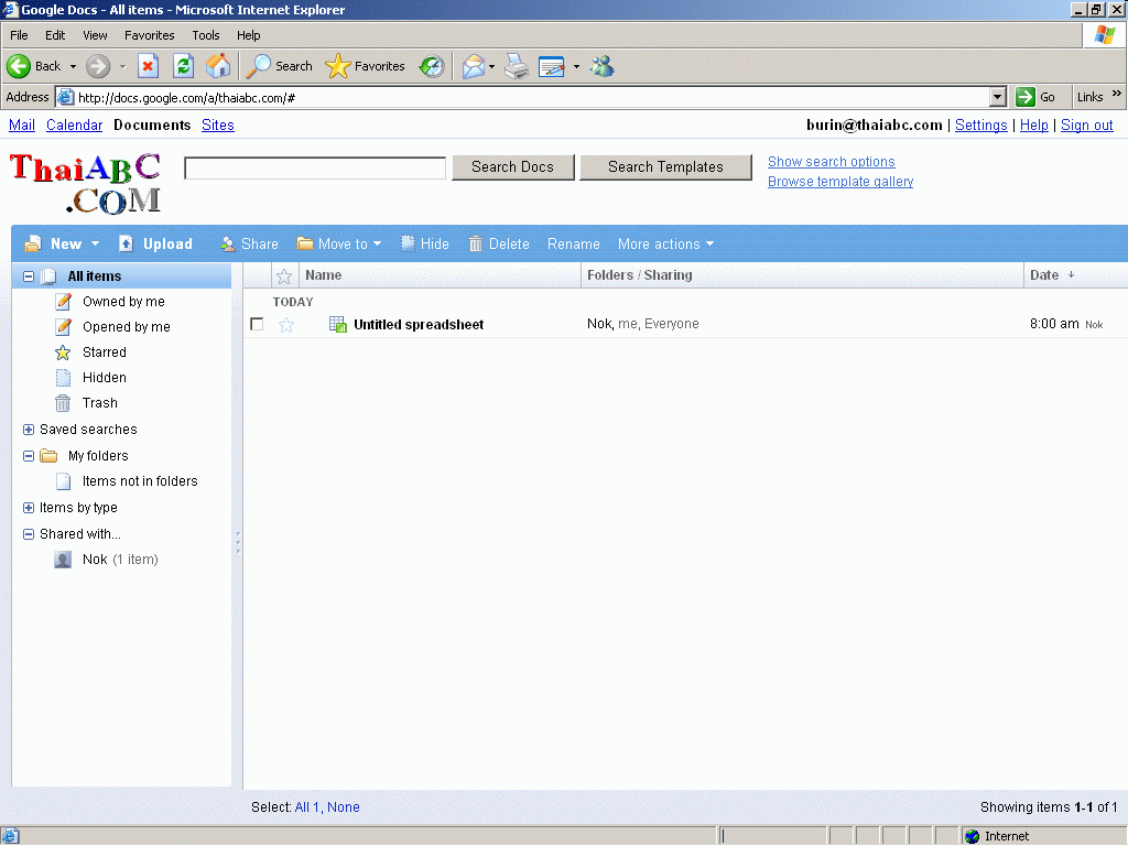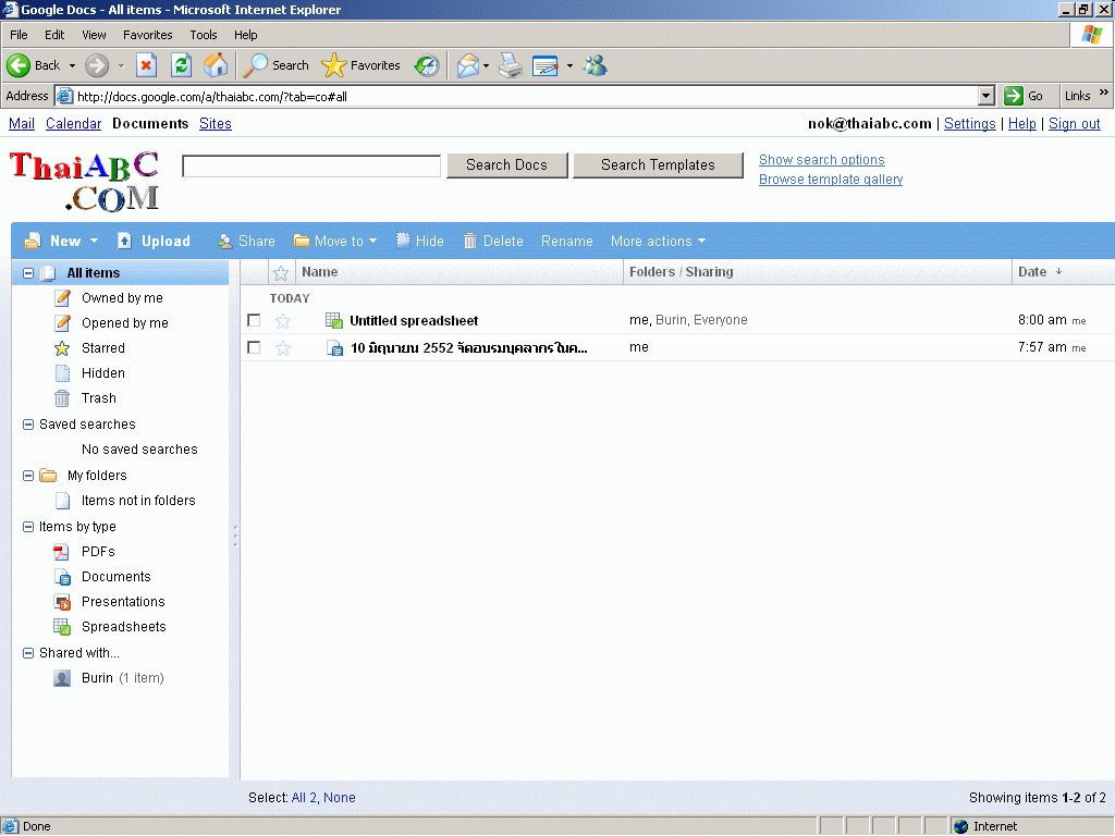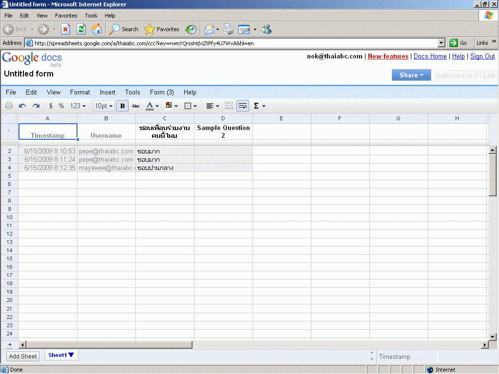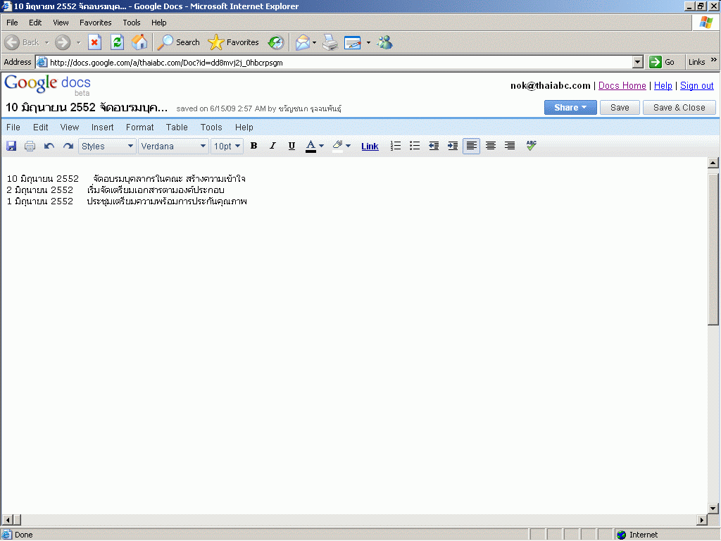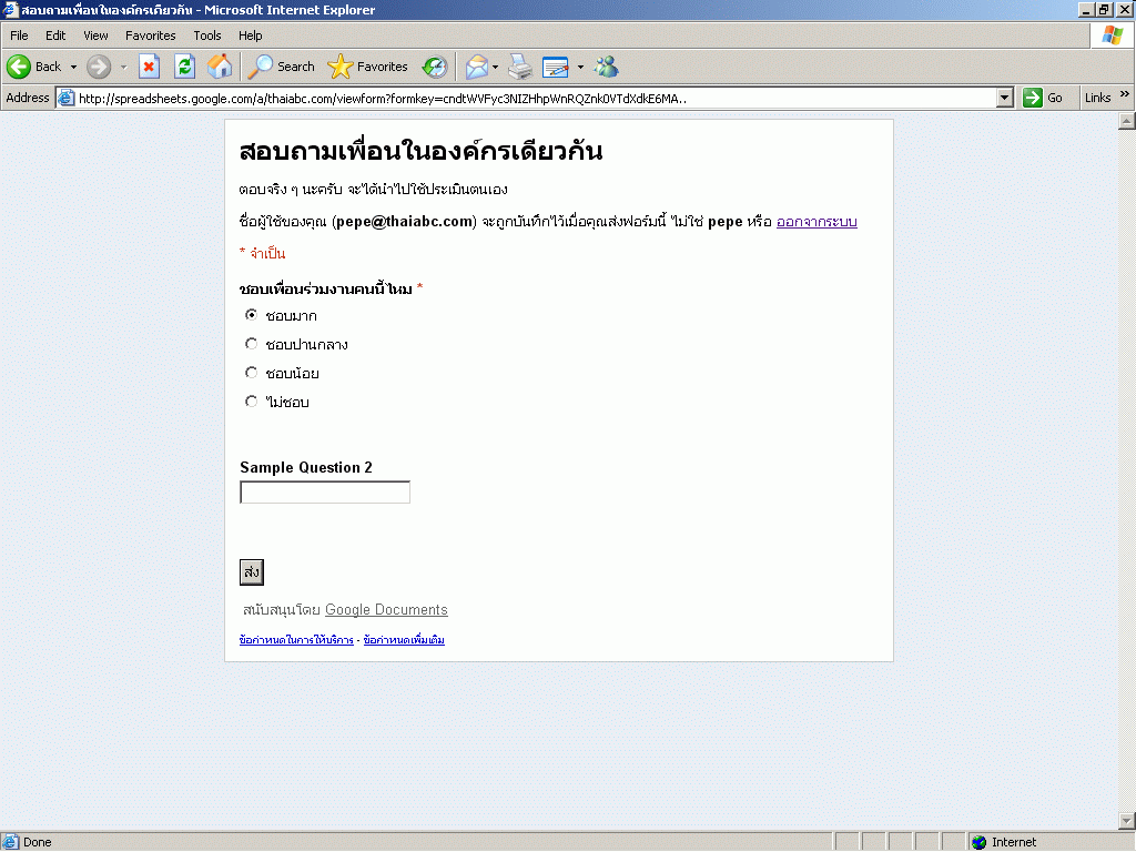 + เมื่อเลือก http://docs.google.com/a/thaiabc.com