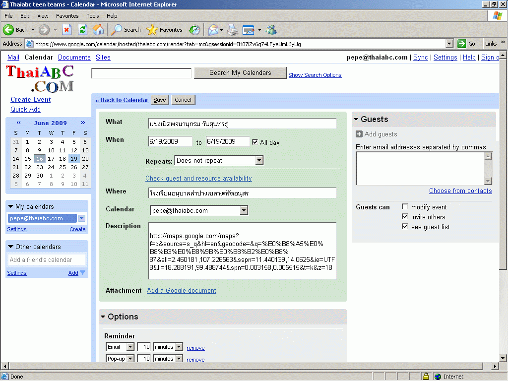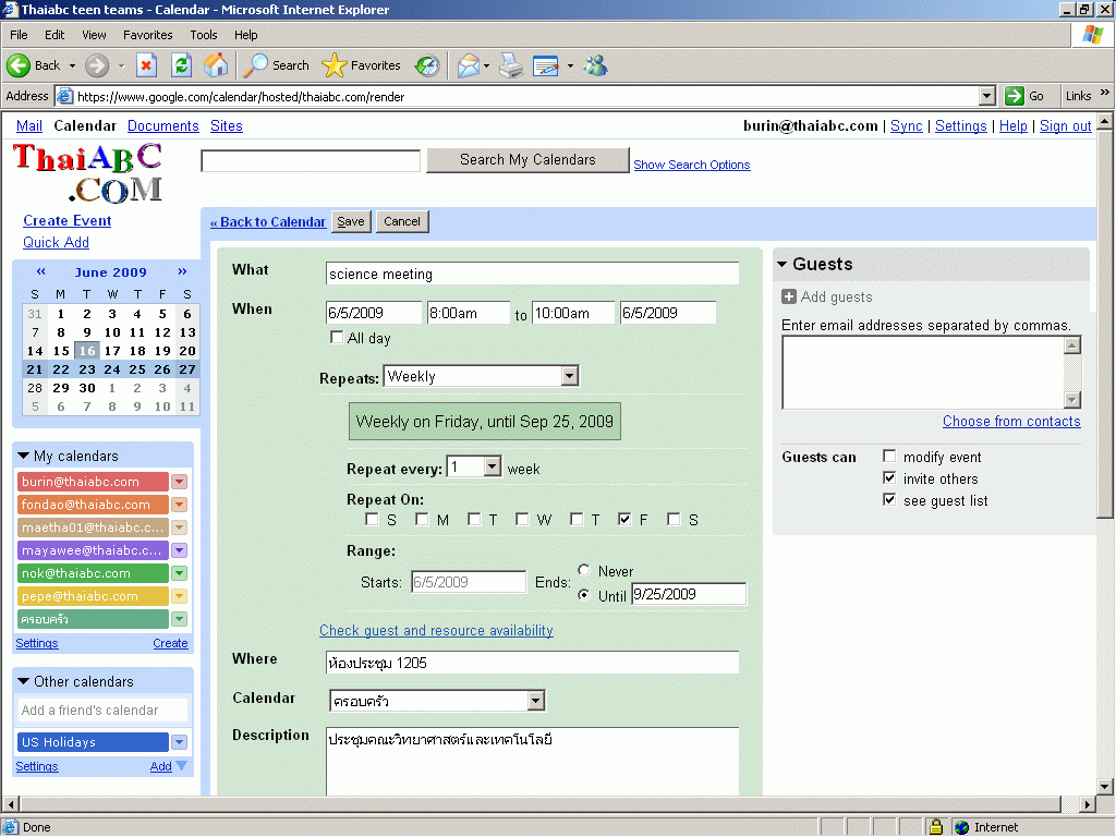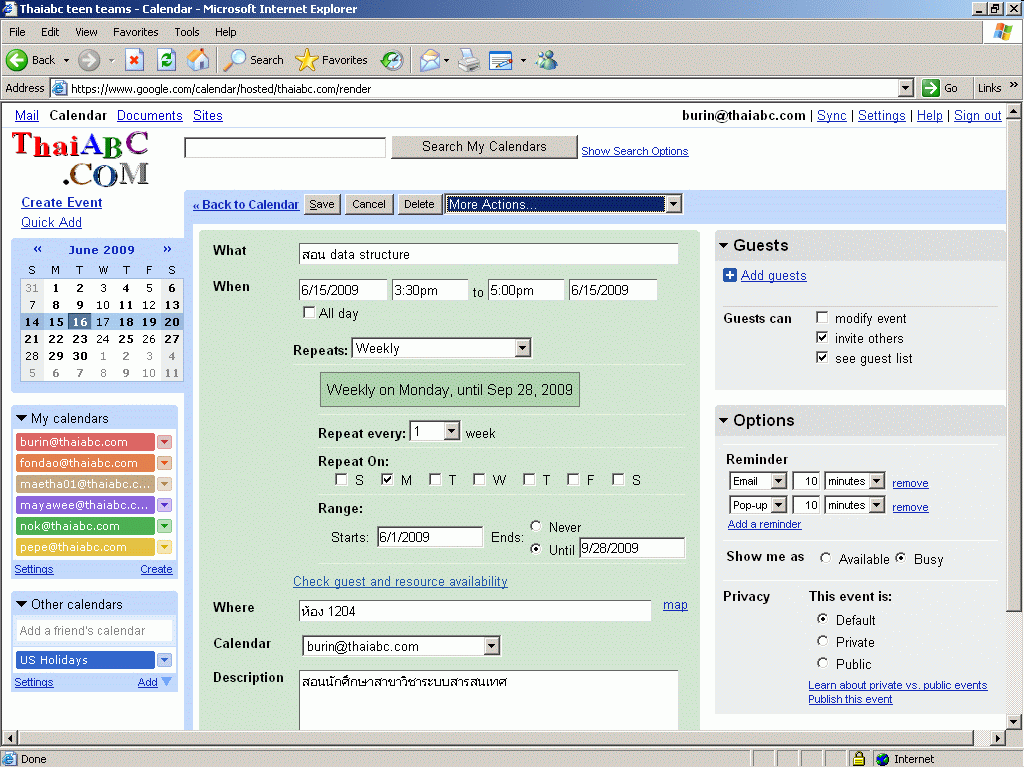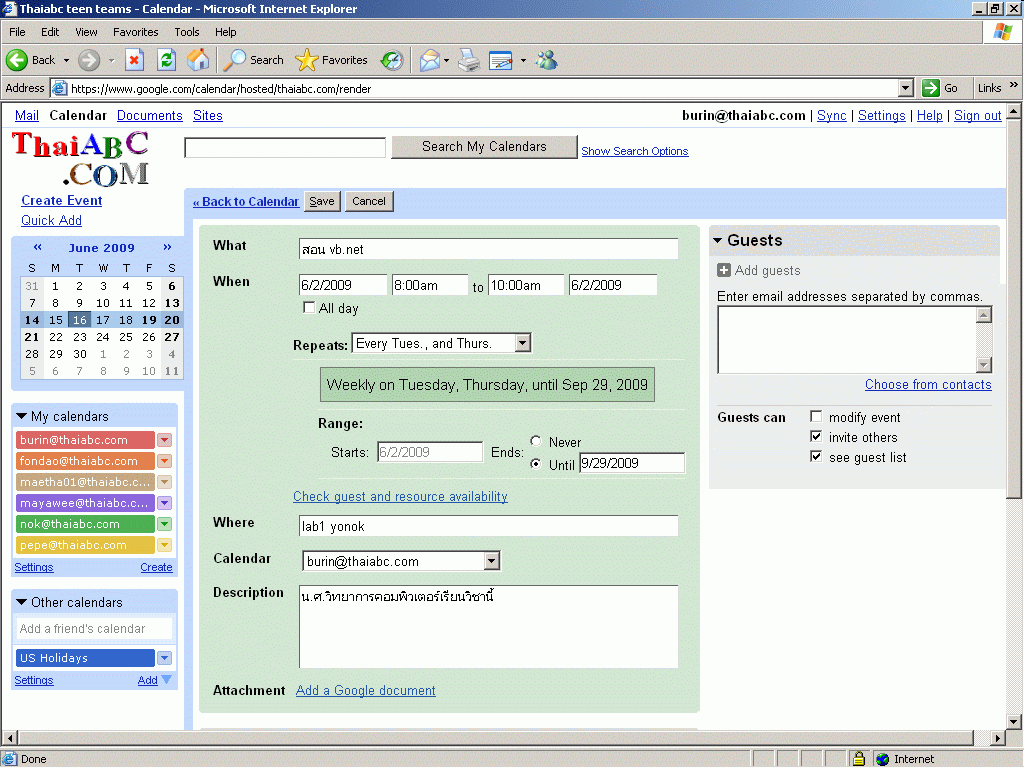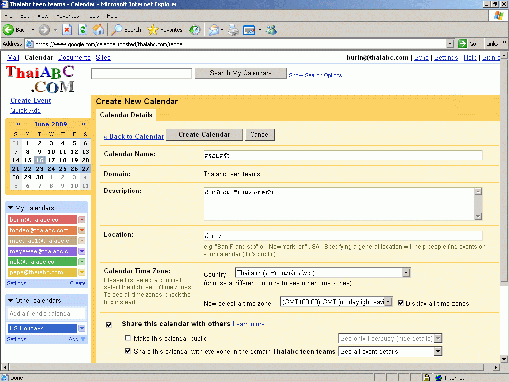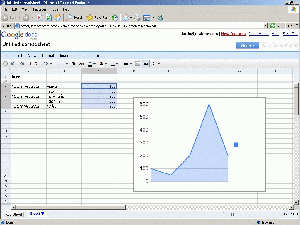+ เมื่อเลือก http://docs.google.com/a/thaiabc.com