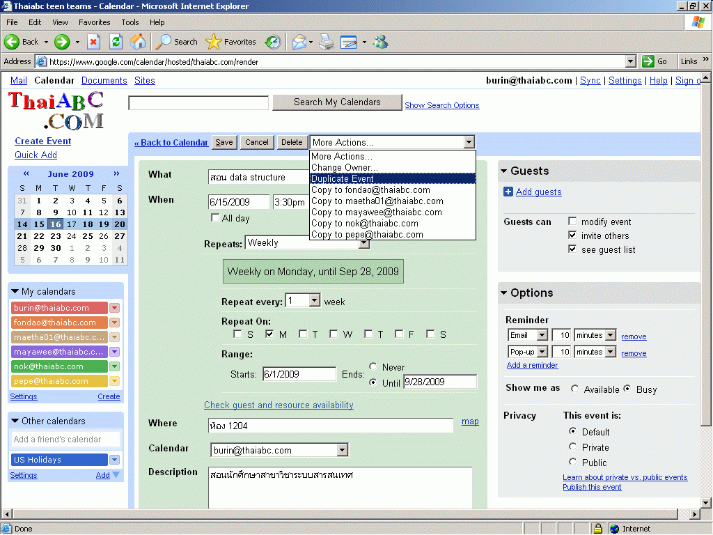+ เลือก Duplicate Event จะได้มีวันที่สองได้คล้ายกัน