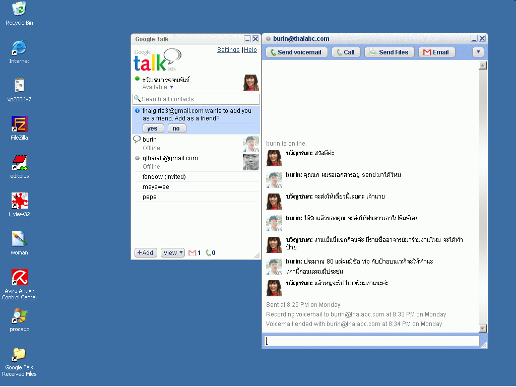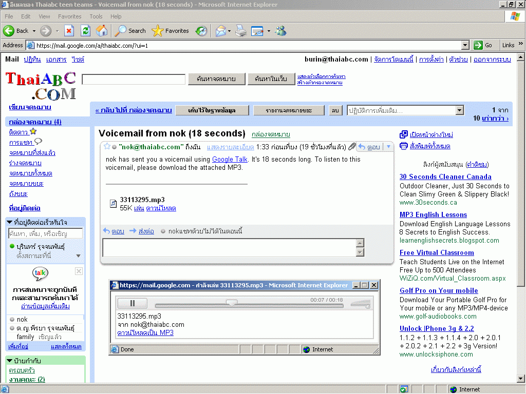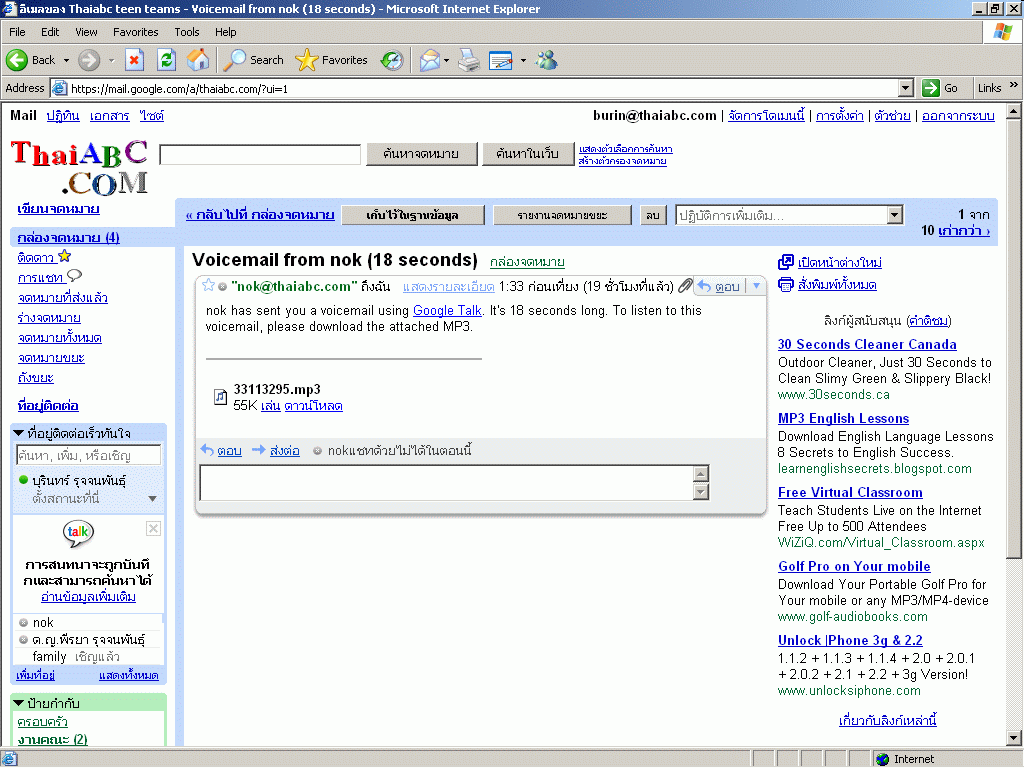 + มีเพื่อนขอคุยผ่าน talk แต่เราไม่อยู่ มาเปิด mail ก็จะพบ voice mail
