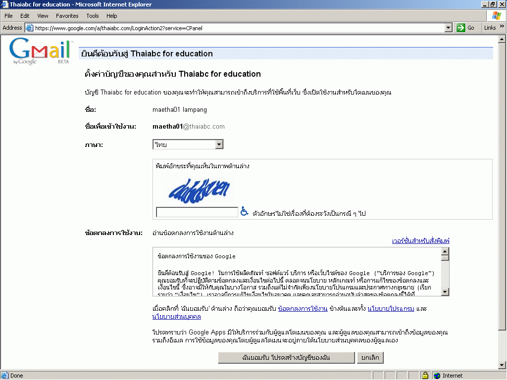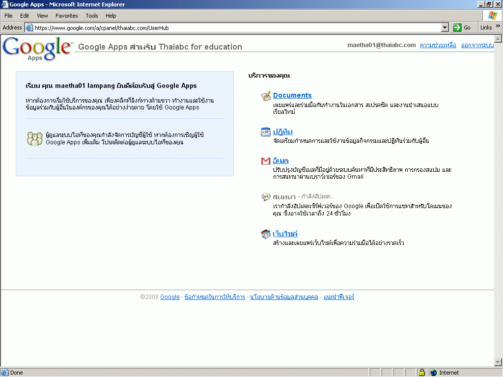 + ลงชื่อเ้ข้าใช้งานผ่านหน้าแรก https://www.google.com/a/thaiabc.com