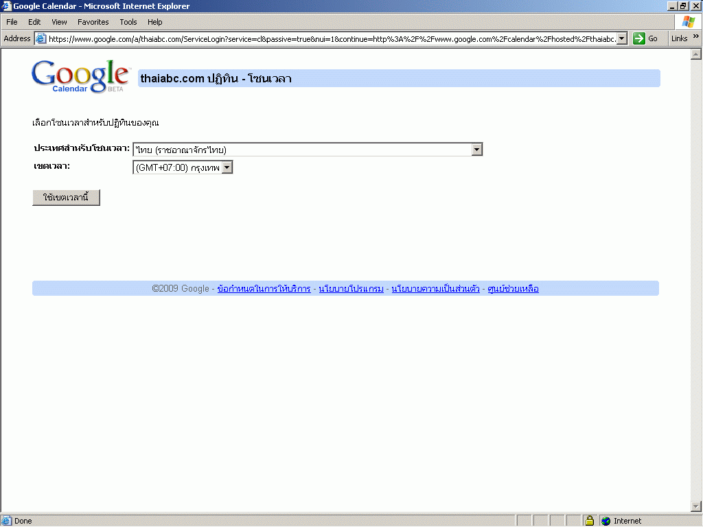 + เมื่อเลือก ปฏิทิน (Calendar) ต้องเลือก Time Zone