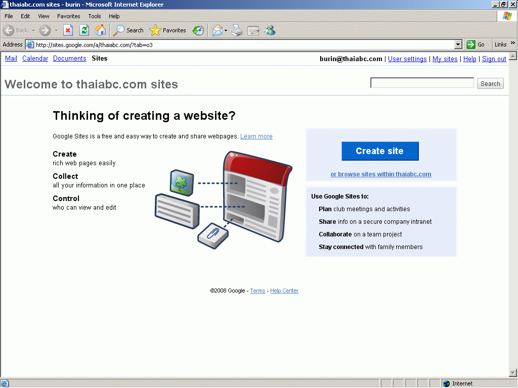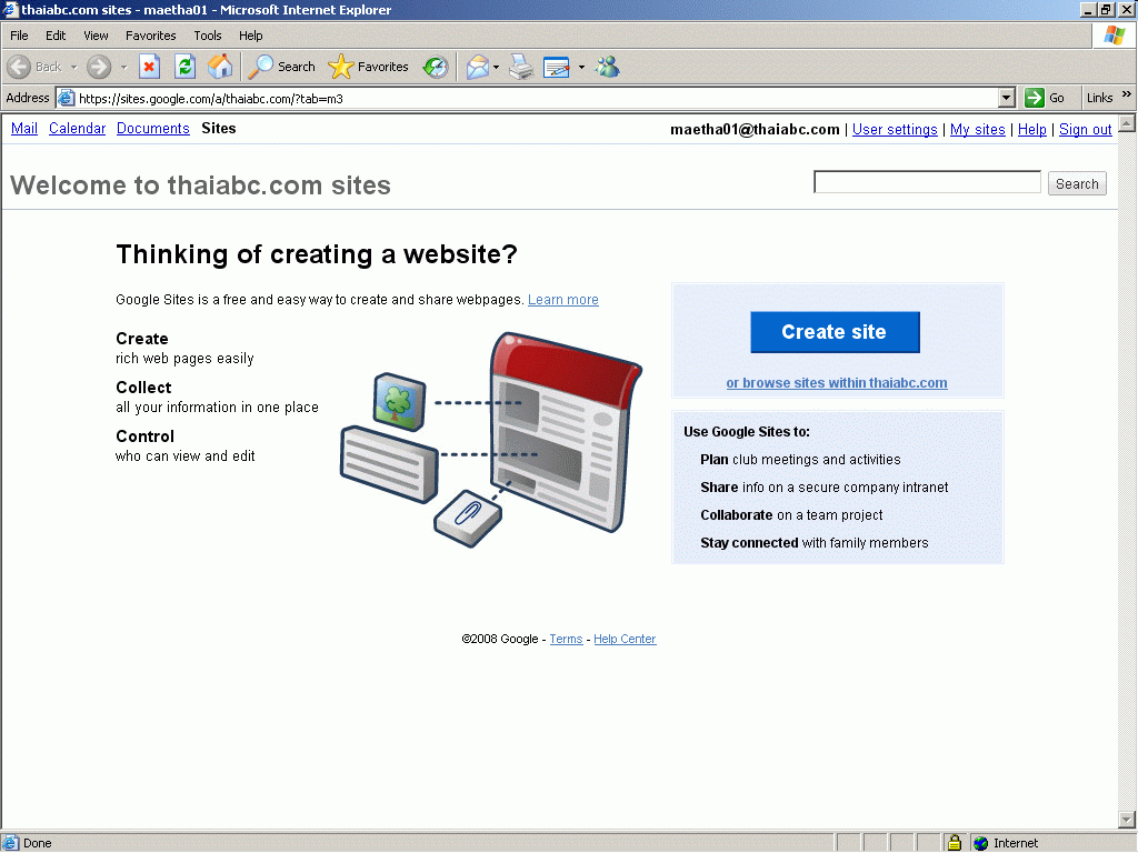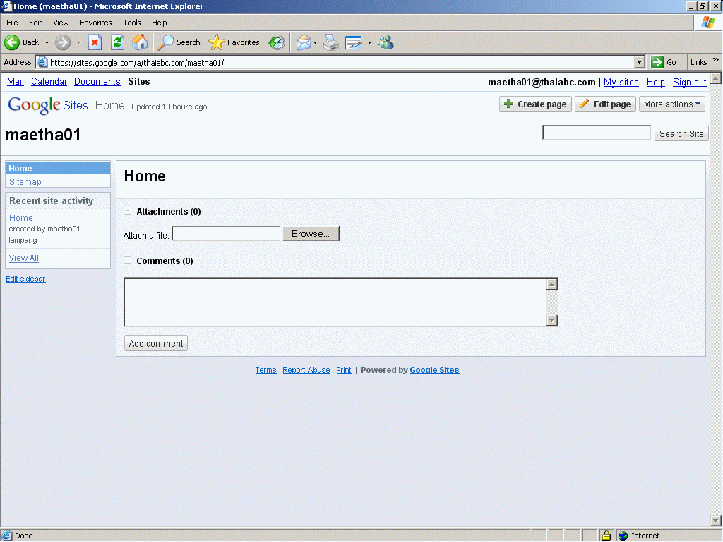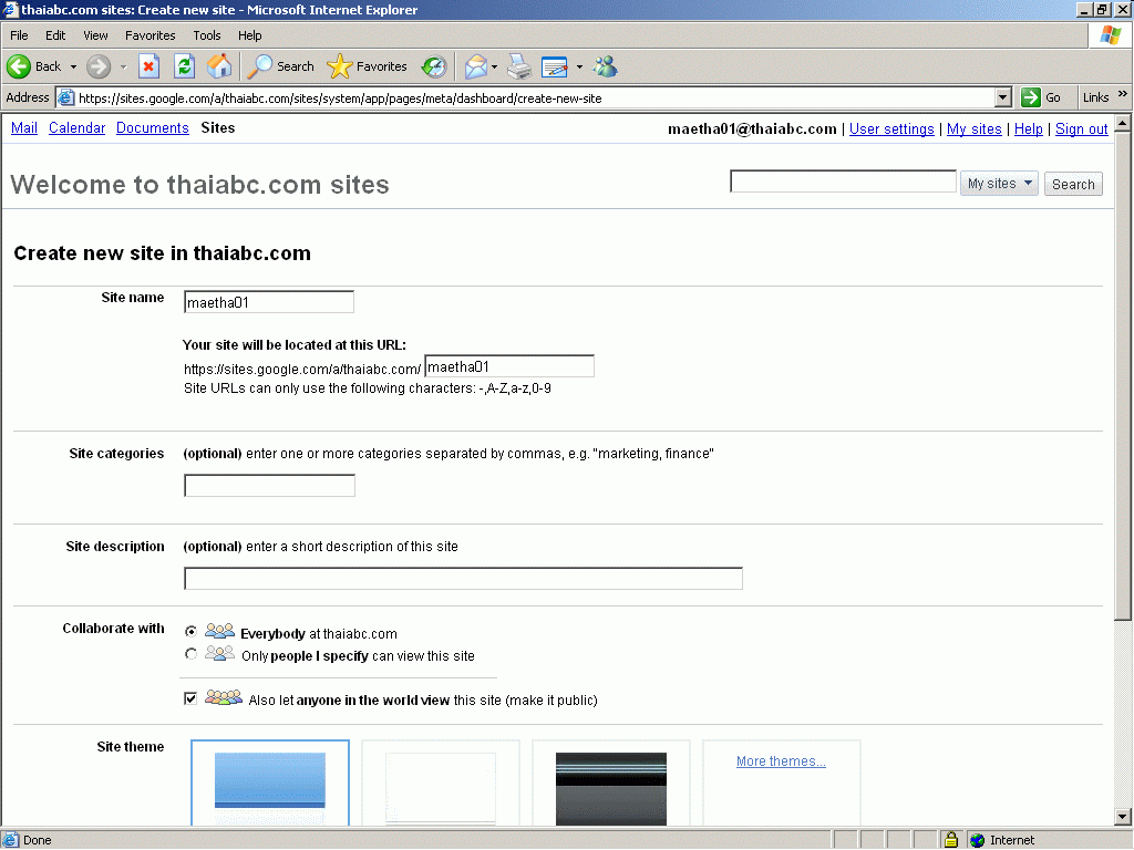 + สร้าง Site ได้หลายชื่อ ตัวอย่างนี้คือ https://sites.google.com/a/thaiabc.com/maetha01