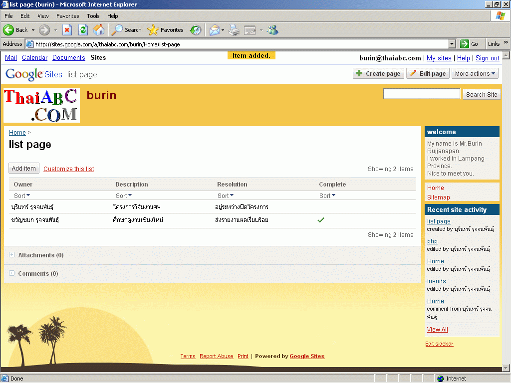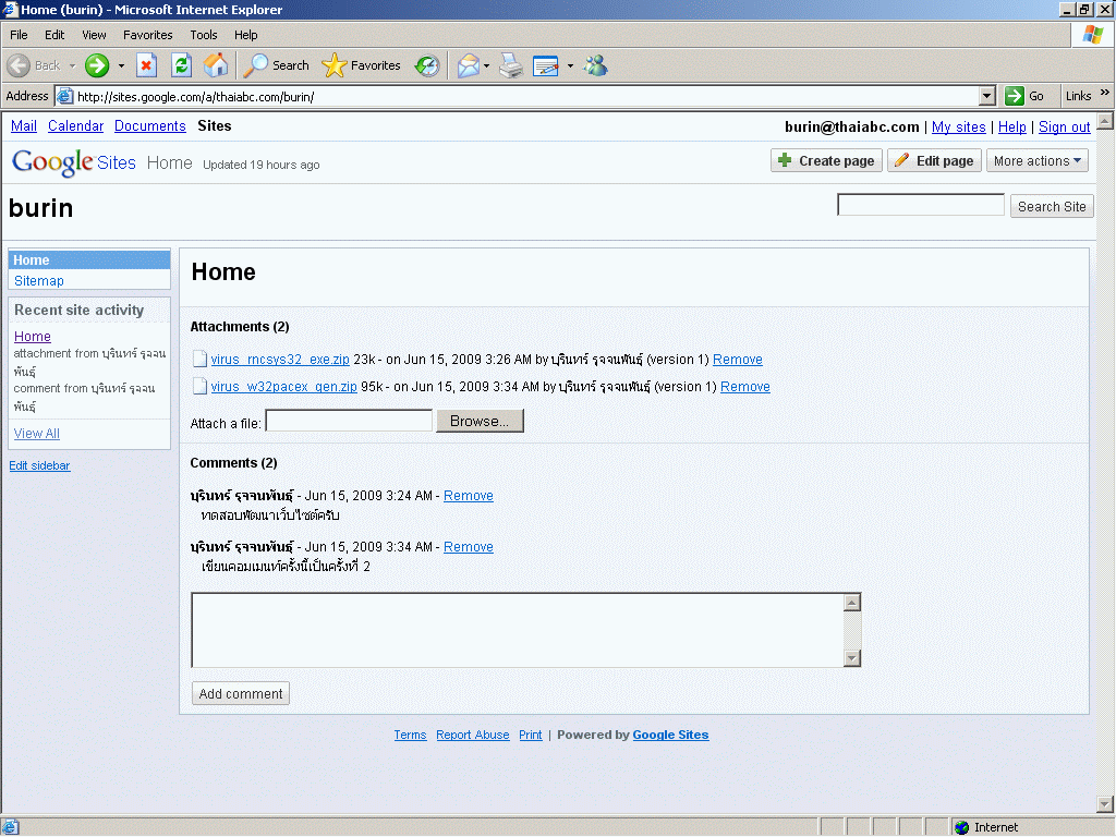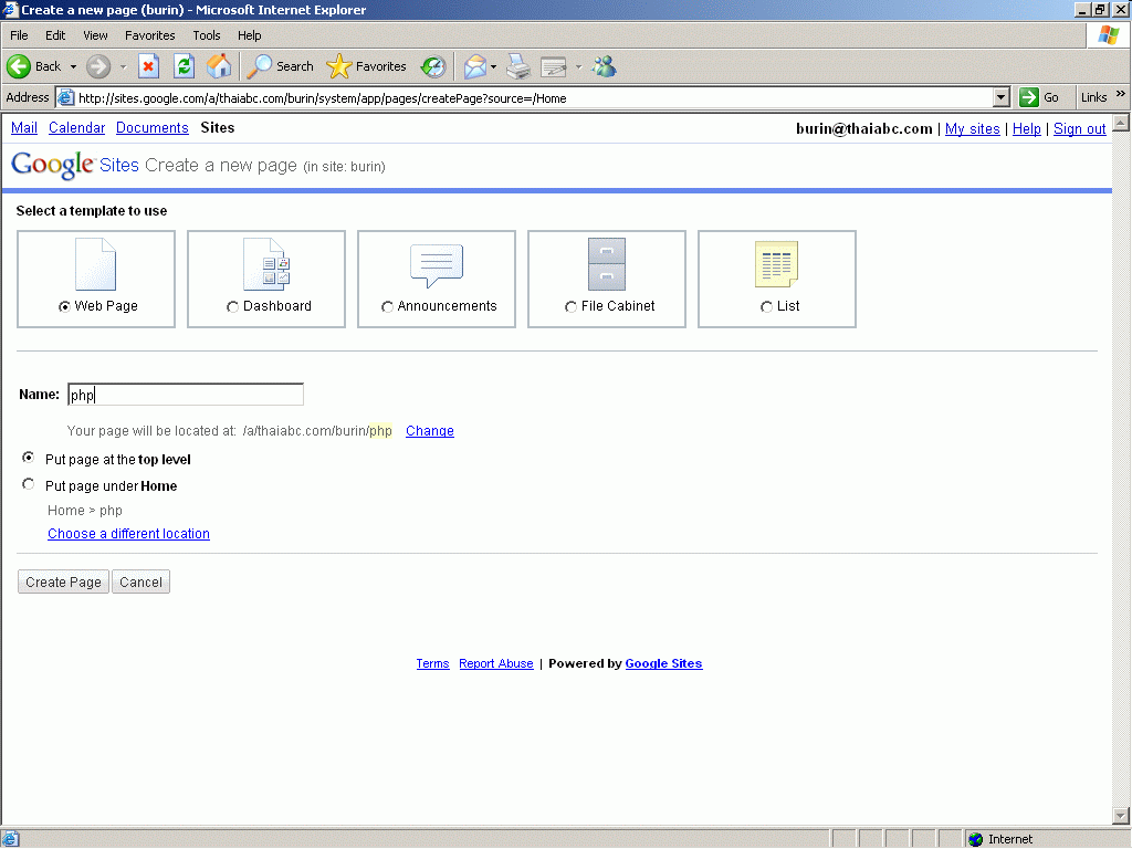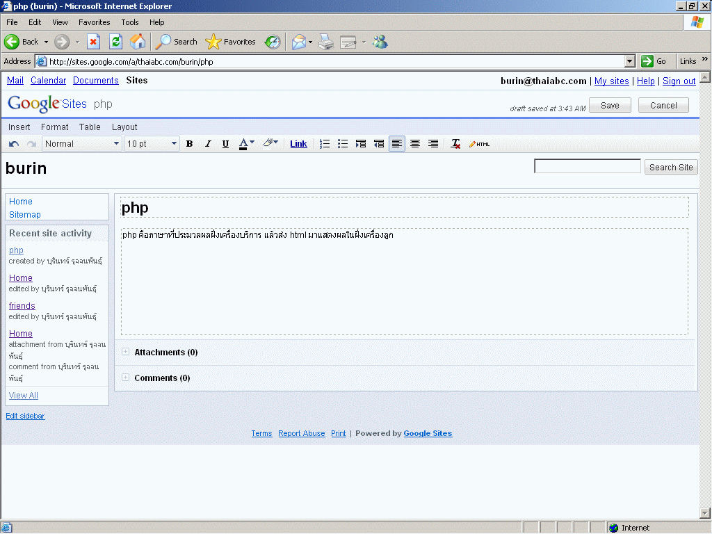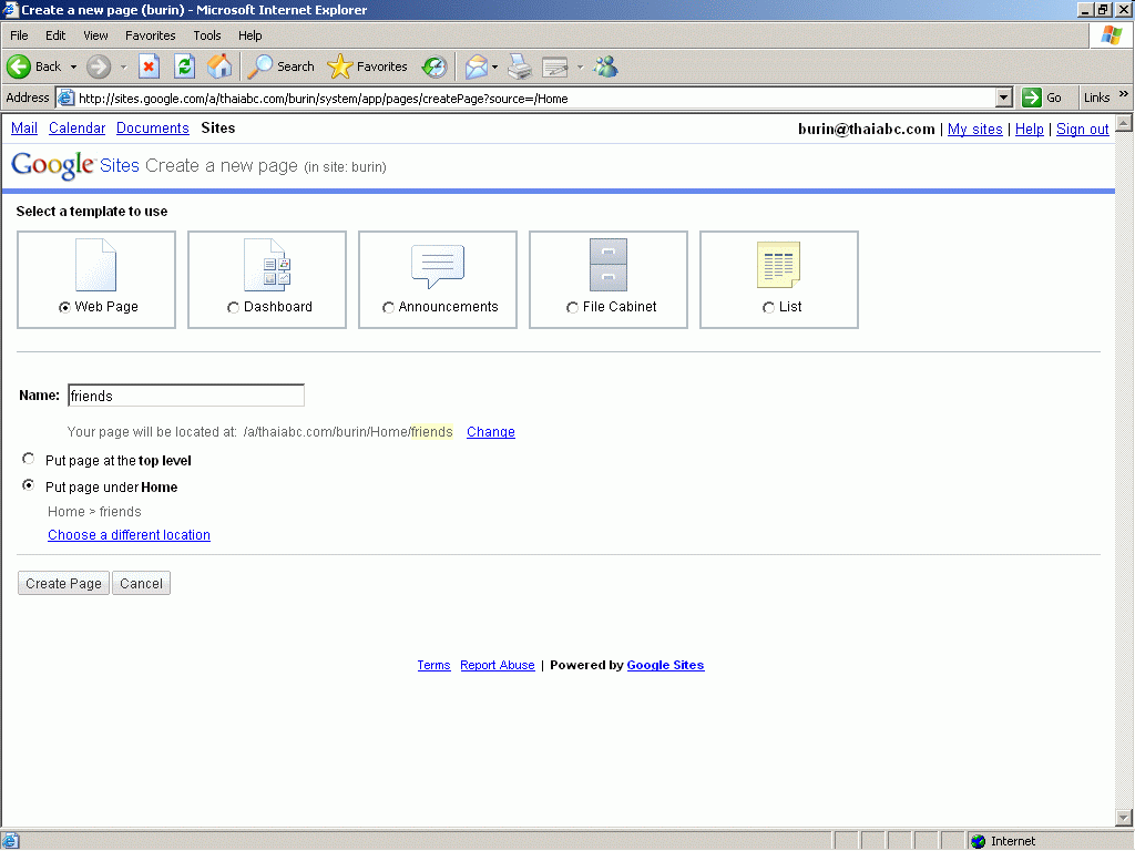 + สร้าง Site ได้หลายชื่อ ตัวอย่างนี้คือ https://sites.google.com/a/thaiabc.com/maetha01