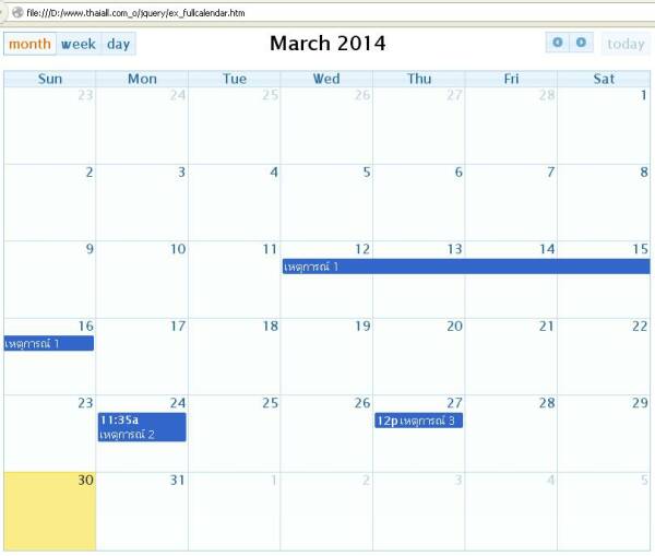 ตัวอย่าง 4. การใช้ jquery fullcalendar