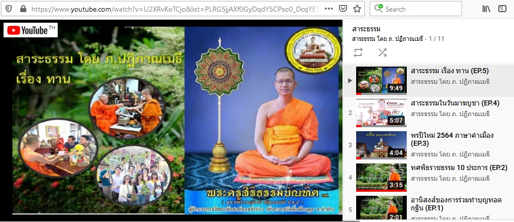 ปีการศึกษา 2563 ได้รับเมตตาจาก พระครูสิริธรรมบัณฑิต ให้ได้ทำงานร่วมกันอีกครั้ง ในเรื่อง "การเผยแพร่พระพุทธศาสนา โดย ภ.ปฏิภาณเมธี" เพื่อศึกษาแนวทางการเผยแพร่สาระธรรมผ่านสื่อมัลติมีเดียในหลายช่องทาง แต่เน้นไปที่ youtube.com และ facebook.com ซึ่งมีประเด็นให้เรียนรู้การจัดการคลิป และการทำงานร่วมกันอีกมากมาย จึงจัดทำคลิปวิดีโอ 5 ตอน (episode) บันทึกใน playlist เริ่มจากเลือกประเด็น เตรียมบท แล้วพระครูจะบันทึกผ่านอุปกรณ์ แล้วส่งมาทาง facebook messenger การดาวน์โหลดจะเข้า mobile.facebook.com บน desktop แฟ้มเสียงที่ download ออกมาแล้วจะได้แฟ้มแบบ mp4 จึงต้องส่งไปแปลงบน cloudconvert.com/mp4-to-mp3 จากนั้นส่งแฟ้มแบบ mp3 ไปเพิ่มระดับเสียงให้ดังขึ้นบน mp3louder.com แล้วใช้โปรแกรม avs video editor ในการตัดต่อ ก็จะได้แฟ้มแบบ avi ขนาด 1280*720 สำหรับ upload ขึ้นไปยัง youtube.com ซึ่งวันนี้ได้จัดทำตอนที่ 5 และเริ่มเผยแพร่ออกไป ซึ่งคลิปทั้งหมดประกอบด้วย 1) อานิสงส์ของการร่วมทำบุญทอดกฐิน 2) ทศพิธราชธรรม 10 ประการ 3) พรปีใหม่ ภาษาคำเมือง 4) สาระธรรมในวันมาฆบูชา 5) สาระธรรมเรื่อง ทาน หลังเผยแพร่ใน youtube ก็จะเข้าไปพูดคุยแลกเปลี่ยนกับเพื่อนธรรม ในกลุ่มเฟสบุ๊คไม่ต่ำกว่า 10 กลุ่ม/ช่องทาง เพื่อให้ได้ยอด view ตามเป้าหมายของแต่ละคลิป