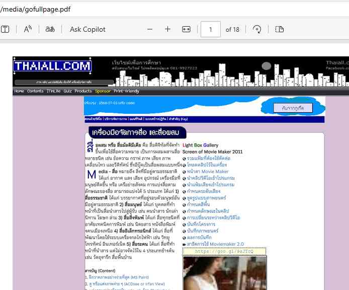 ตัวอย่างแฟ้ม PDF : Print, save as pdf และ Extension, Gofullpage