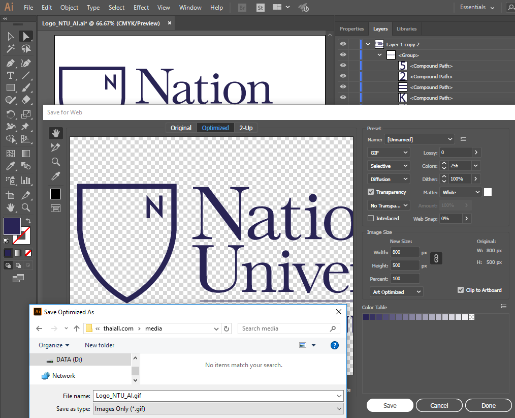 1. เปิด Folder ที่เก็บโลโก้ และคลิปสอนออนไลน์ของวิชาหนึ่ง เพื่อตรวจสอบรายชื่อแฟ้ม และจำนวจตามหัวข้อ เช่น Nation-U-original-bw.png และ tha1001_05_00.mp4 ซึ่งต้องมีรายการหัวข้อแนบมาจากผู้สอนใน Excel เช่น หน่วยการเรียนที่ 5 มี 5 หัวข้อ แต่มี 7 คลิป ตามเงื่อนไขของการเตรียม VOD คือเพิ่มบทนำ และสรุป