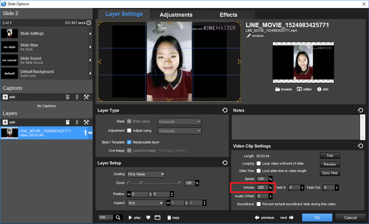 การเพิ่มเสียงให้กับคลิปด้วย Proshow producer มื่อบันทึกคลิปแล้ว พบว่า เสียงเบา ถ้านำไปตัดต่อใน Proshow producer สามารถเพิ่มเสียง แล้วยังสามารถเพิ่มลดความเร็วได้ โดยเข้าไปที่ Video Clip Settings ปรับ Speed หรือ Volumne ไปถึง 200% ได้