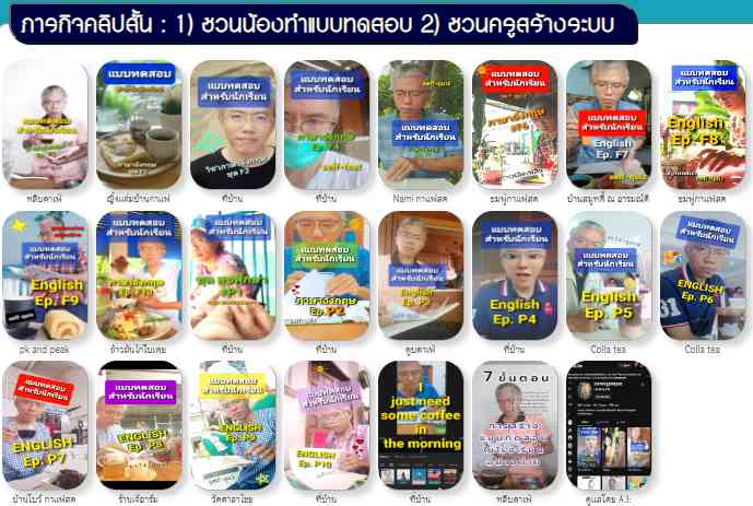 ปี 2566 ตลอด 8 เดือนที่ผ่านมา มีเรื่องราวมากมายเกิดขึ้น โดยเฉพาะเรื่องสุขภาพ ที่ทำให้ต้องลาออกจากงาน จนย่างเข้าเดือนที่ 8 มีโอกาสด้วยเรื่องเวลาและสถานที่ จึงเข้าสื่อสังคม และใช้ capcut ตัดต่อคลิปสั้น ส่งเป็น short clip ให้กับ tiktok และ reels ที่มี A.I. ตัวหนุนเสริม และคัดกรองตามข้อกำหนดของชุมชน จึงได้หยิบข้อสอบชุด test3 ใน thainame.net ที่เด็ก ๆ ทำไว้เมื่อราว 10 ปีก่อน มาปัดฝุ่น และปรับ open source ไปด้วย แต่ละคลิปส่งเข้าทุกสื่อสังคมที่สนใจ ได้แก่ 1) tiktok, 2) reels, 3) instagram, 4) youtube, 5) line หรือ 6) twitter แต่ละคลิป ประกอบด้วย 1) ภาพปก 2) ภาพพื้น 3) ภาพเคลื่อนไหว 4) ข้อสอบ 5) เสียง ซึ่ง Theme จะใช้สถานที่คาเฟ่ภายในอำเภอเกาะคาหลายแหล่งเป็น Theme หลัก ส่งเสริมการท่องเที่ยว และธุรกิจในชุมชน ก็หวังใจว่าจะมีส่วนช่วยสนับสนุนชุมชน