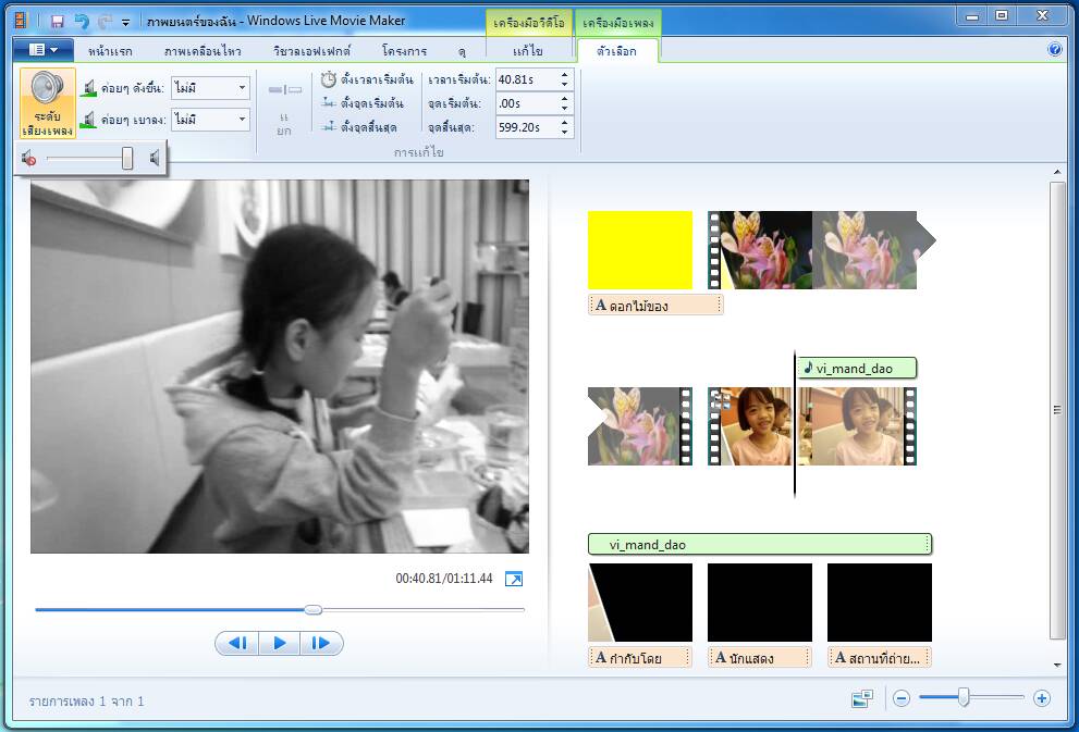 ปล. แฟ้มคลิปที่มีปัญหา ลองตัดหลายช่วงคลิป พบว่า บางช่วงก็มาแต่เสียง บางช่วงมาครบ
