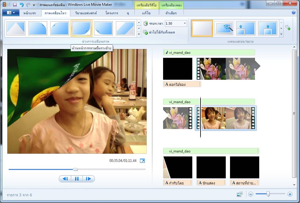 การเปลี่ยนระหว่างคลิปวิดีโอ