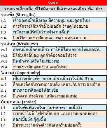 ตัวอย่างผลของ SWOT ที่ต้องปรับปรุง ปัญหาที่พบจากผลการ SWOT ร้านก๊วยเตี๋ยว